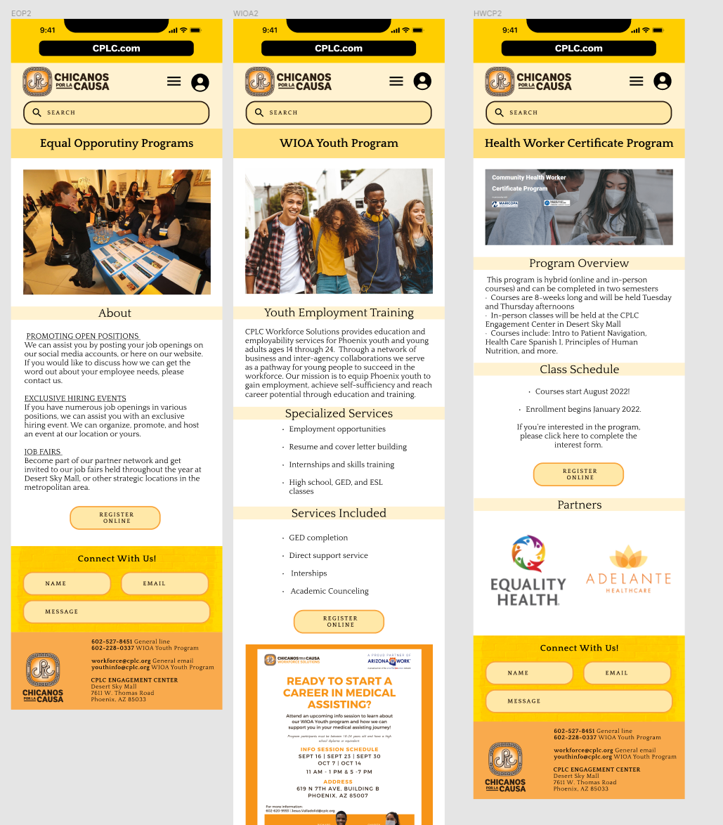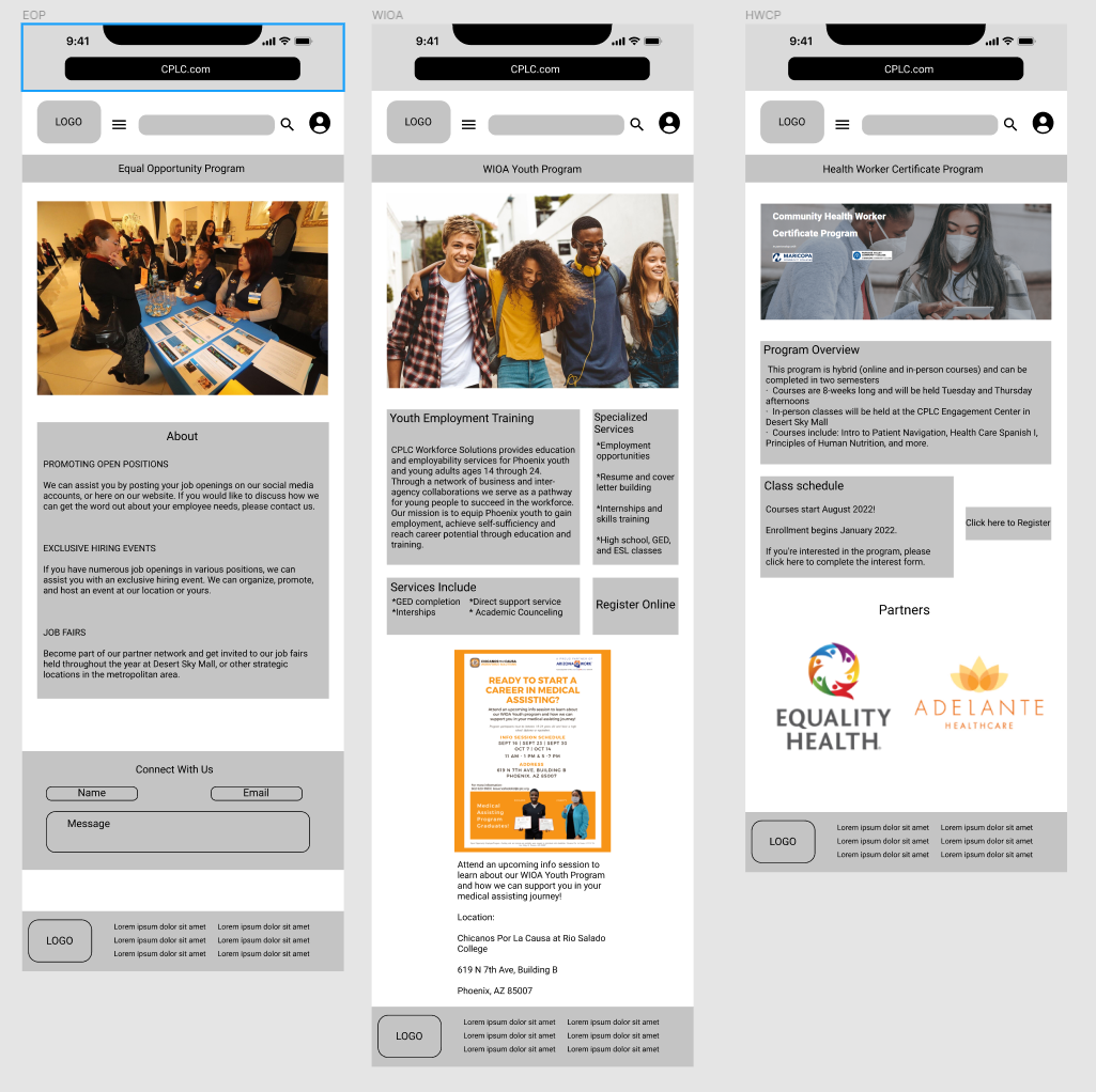 CPLC Workforce Solutions has the services and programs job seekers need to find, prepare for, and keep the right job. However, we have observed that our website isn’t meeting the standard brand guidelines and representation of the CPLC, which is impacting the amount of users we can reach. Users aren’t utilizing the services we offer because we haven’t communicated to our audience well. How might we improve the CPLC Workforce site so that our customers are successful based on the overall brand guidelines and mission?