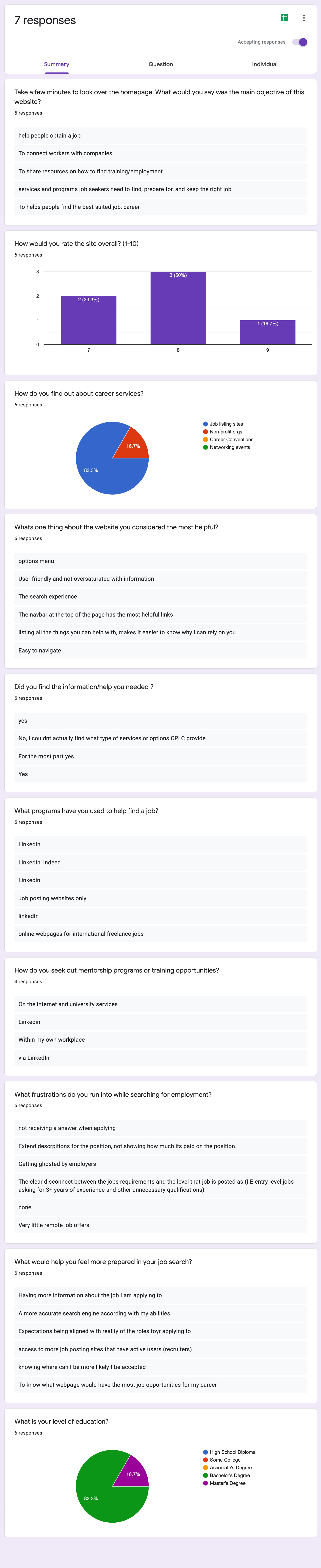We posted a survey to get even more feedback about how users viewed the website and what frustrations they run into as they look for work. How might we connect the dots between people searching for employment and the resources and employers who provide training and opportunity?