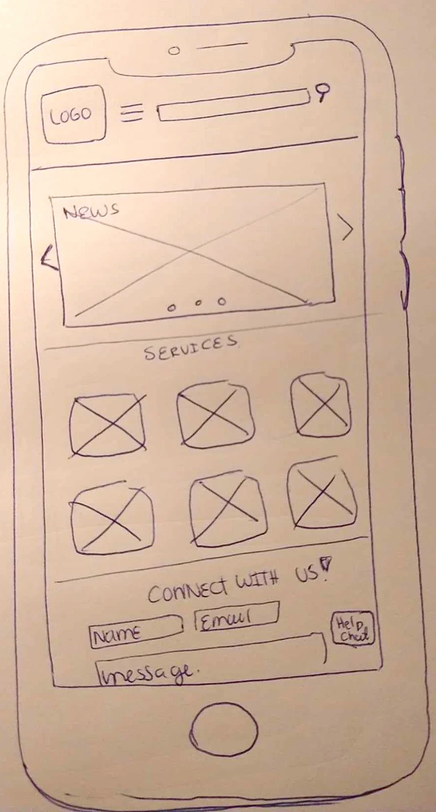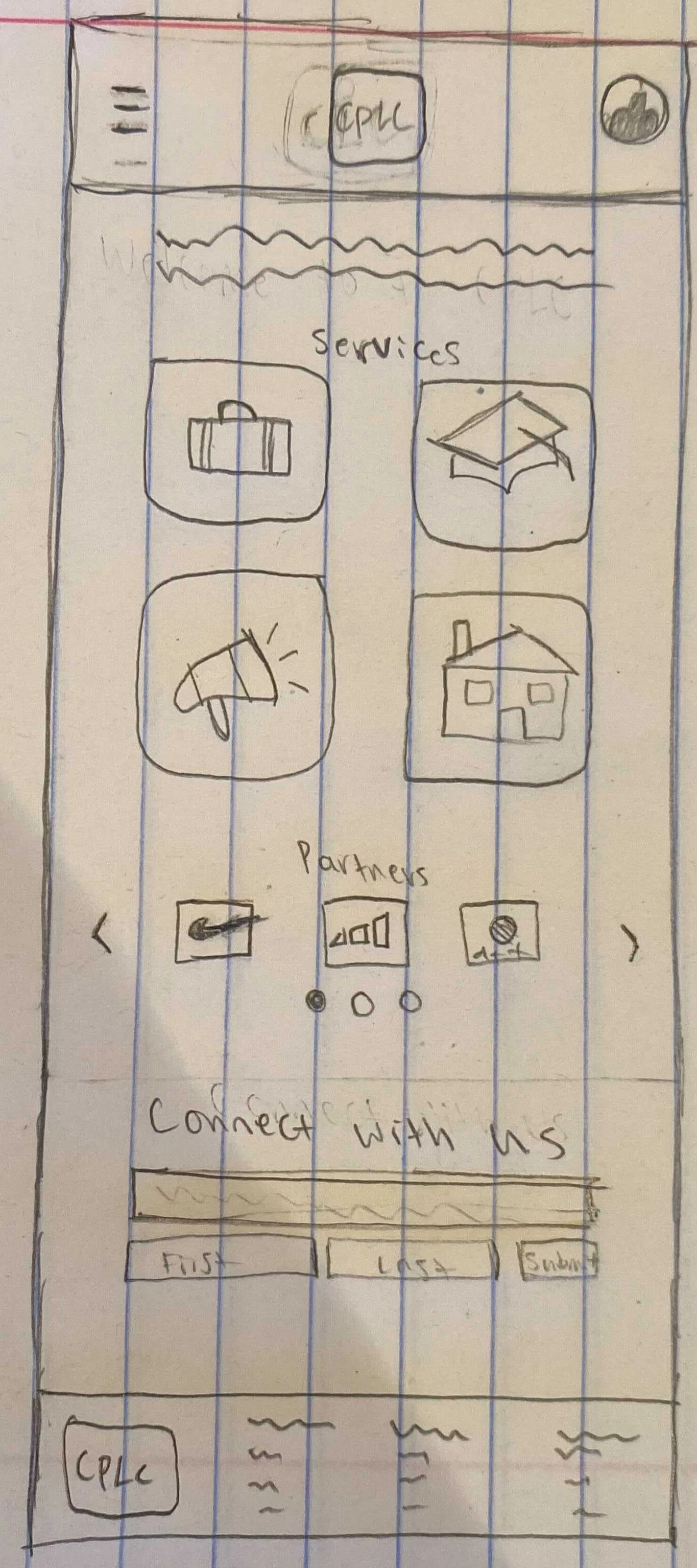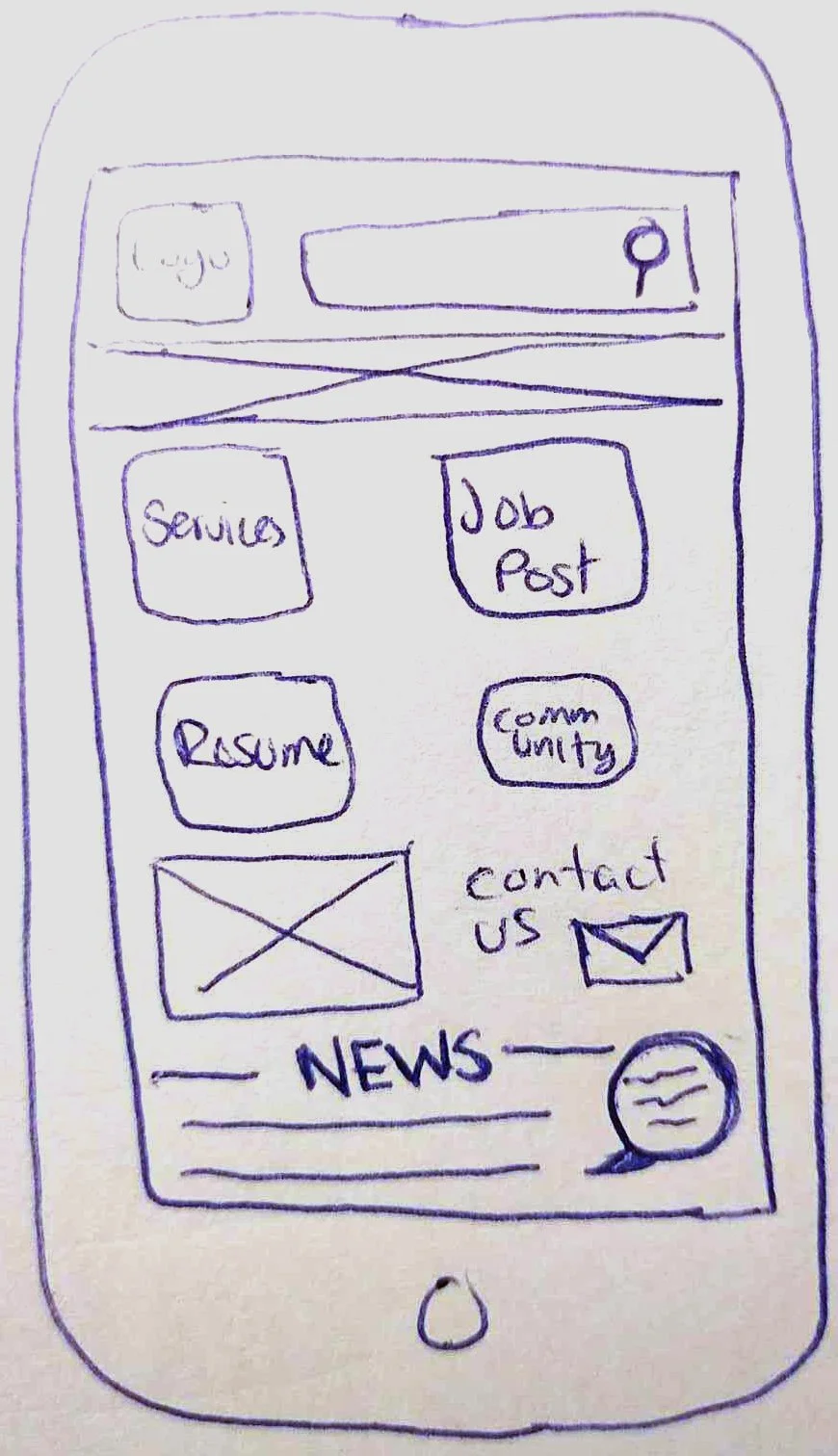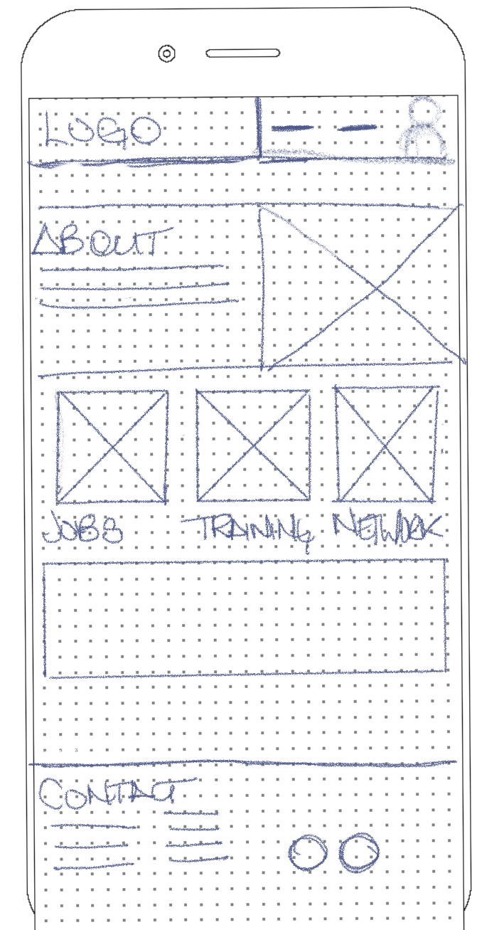 We began with sketches of what the site could possibly look like. We designed mobile first with the intention of the site being responsive.